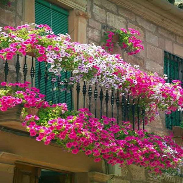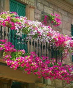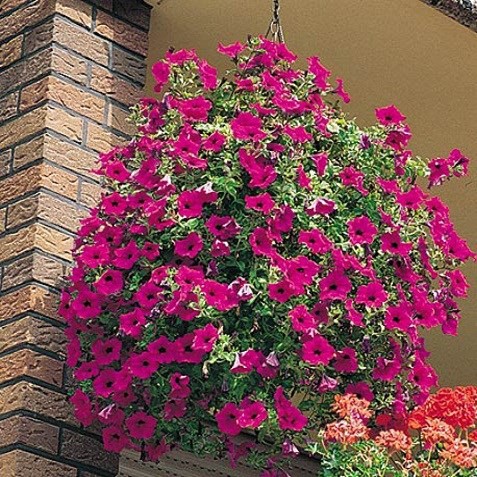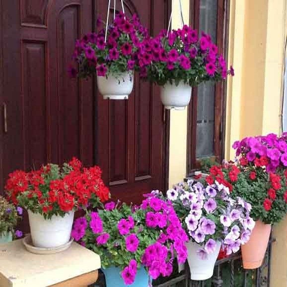 Hoa có nhiều màu sắc tươi tắn như đỏ, hồng, tím, xanh, trắng, vàng…. Khi trồng trong giỏ treo hoặc chậu cao, cây rủ xuống tạo thành thác hoa rực rỡ, tô điểm cho ban công, sân thượng, quán cà phê hay cổng nhà thêm phần lãng mạn.